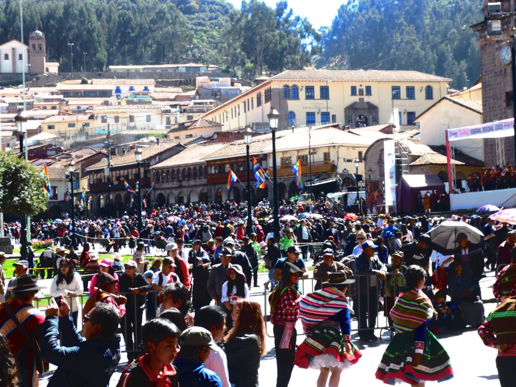 El 24 de junio día de la fiesta del Inti Rami, me dirigí a Coricancha en el casco antiguo de Cuzco donde se da inicio a la ceremonia de reconstitución histórica de la celebración al Dios Sol de los Incas. En Coricancha, Atahualpa con su bastón de mando se dirigió al Dios sol para agradecer por la fertilidad de la tierra y para invocarlo sagradamente. De allí, todos los grupos amerindios provenientes de todo el territorio peruano con el colorido de sus trajes tradicionales y la diversidad de ritmos musicales y por supuesto de danzas se van dirigiendo a la plaza mayor de Cuzco. Los últimos en llegar a la Plaza Mayor fueron Atahualpa y su mujer La Colla. Cuando Atahualpa subió al trono que le tenían preparado acompañado de un chaman iniciaron un acto de agradecimiento al Dios Sol. Posteriormente, Atahualpa se dirigió al Tihuantisuyo compuesto por los mandatarios del suyo del norte; del suyo del sur, del suyo del este y del suyo del oeste del territorio peruano. Básicamente imploró a los gobernantes de cada suyo, ser honestos, pensar colectivamente y no individualmente, hacer el bien y trabajar por la abundancia para la comunidad. También resaltaba los errores y problemas que hacían difícil la vida en los diferentes suyos para que los gobernantes y la gente trabajará por el bien común.