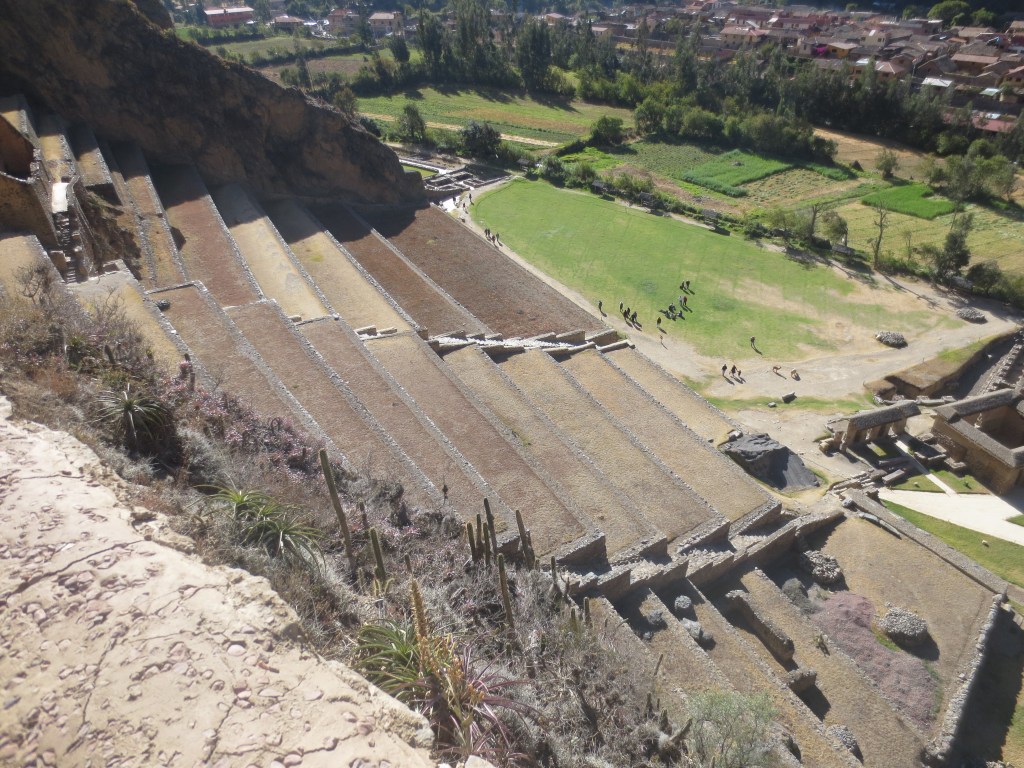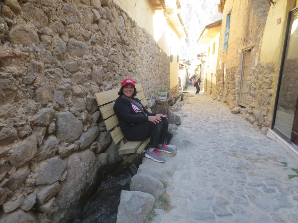 Al día siguiente, me fui a un pueblo llamado Ollantaytambo, situado a tres horas de la ciudad de Cuzco. De este pueblo sale el tren para visitar Machu Picchu. Este pueblo rodeado de montañas con sus calles empedradas y sus casas de piedra caliza es un verdadero encanto. Al marchar por sus calles laterales vamos escuchando el ruido del agua que desciende por canales hasta el rio Urubamba. El hotel donde me hospedé tenía unas vistas fabulosas de la montaña Pinkuylluna y de la ciudad Inca de Ollaytatambo, ubicada en la montaña Incahuacama.El nombre de la ciudad viene de un dirigente Inca llamada Ollantay, y Tambo significa lugar de descanso. En este lugar solían descansar por unos días los que atravesaban el valle sagrado de los Incas en el siglo XII y XV d.c.