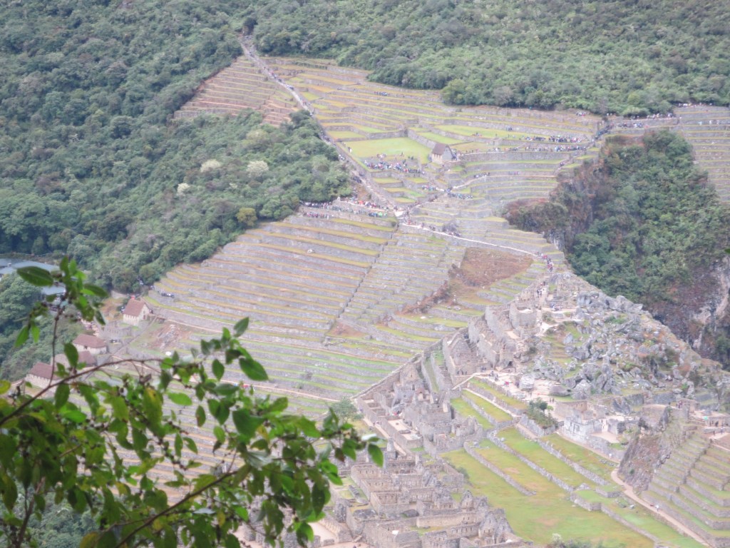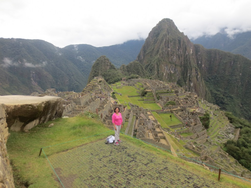A las cinco de la mañana, tomé el tren en dirección de Aguas Calientes porque desde allí se toma un autobús que nos conduce a la ciudad de MachuPicchu. Al llegar a MachuPicchu a las 7h30 de la mañana, unas gruesas nubes cubrían la ciudad, nubes que se desplazaban como velos hasta dejar al descubierto el resplandor de esta ciudad. Lo impresionante de estar allí es verse en la cima de una montaña donde hay construcciones en piedra que debieron implicar grandes trabajos para quienes lo hicieron. Antes de visitar la ciudad fui a escalar la montaña joven conocida como Wayna Picchu. A medida que íbamos escalando esta montaña, el guía nos mostraba las plantas utilizadas para calmar el malestar y dolores de los diferentes órganos del cuerpo. Ascendimos a los 2660 metros de altitud. Desde allí veíamos la ciudad de MachuPicchu trazada con la forma del Cóndor.