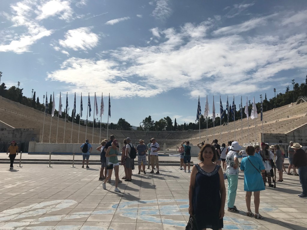 Regresamos al parque y nos dirigimos hacia una salida que comunicaba con el estadio Panatenaico. Un estadio construido con mármol blanco del Monte Pentélico. Su construcción fue financiada por George Averoff y el arquitecto fue Anastasios Metaxas. En este estadio tuvieron lugar los primeros juegos olímpicos de la modernidad en 1896. Tiene una capacidad para acoger 60000 espectadores. En los últimos años ha sido utilizado para la presentación de conciertos musicales de artistas internacionales y nacionales.