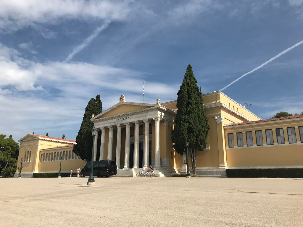 El Zappeion fue construido por el arquitecto austriaco-danés Theophil Von Hansen para acoger las delegaciones de los primeros juegos Olímpicos modernos de 1896. Sirvió también como Villa olímpica durante los juegos de 1906. Allí se firmó la adhesión de Grecia a la Unión Europea en 1979. Actualmente acoge conferencias y eventos de carácter internacional. A las afueras del Zappeion hay una gran plaza en la cual durante el otoño se presentan películas al aire libre en la noche. Nos dirigimos enseguida hacia el templo de Zeus olímpico, el cual se ve de lejos porque no hay acceso y del cual solamente quedan hoy 15 columnas porque un temblor de tierra lo destruyó. Fue un templo que el emperador romano Adriano logró terminar después de múltiples interrupciones desde la Grecia clásica. Dedicó el templo a Zeus por ser un gran admirador de la cultura griega. La puerta de Adriano es la que da acceso al área romana en Atenas. Cruzando la calle entramos al barrio de Plaka, uno de los barrios más pintorescos y agradables por recorrer en Atenas. Con sus calles estrechas de piedra rodeadas de edificios y casas de colores cálidos y vivos y sus jardines interiores. El barrio de Plaka guarda la huella de los diferentes pueblos que ocuparon sucesivamente Atenas en términos arquitecturales e iglesias. Algunos ándenes cubiertos de verdor donde se extienden las mesas de los restaurantes que abren sus puertas sobre todo en la noche. El barrio de Plaka no es el mismo de día que de noche porque el ambiente nocturno es diferente a causa del ambiente de las tabernas y restaurantes.