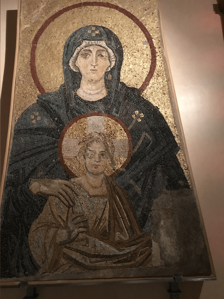 En un hermoso edificio neoclásico se encuentra el Museo Benaki, situado cerca del Jardín Nacional y del Parlamento griego. La exposición abierta al público comprende las salas del primer piso que abarcan el arte de la época prehistórica hasta la época bizantina. De la época prehistórica sobresalen las expresiones artísticas de la cultura minoica en cerámicas de uso doméstico o para los ritos funerarios tan importantes para esta cultura. Luego el arte de la antigua Grecia en esculturas y estelas funerarias de mármol y de arcilla encontradas en Ática, Beocia y otras regiones de Grecia. Otra sala dedicada al arte romano que se caracterizó por esculturas que eran retratos imperiales de los dirigentes romanos y por la copia en mármol de las creaciones griegas de la época clásica (S.IV y V a.c). Los romanos desmantelaron muchos lugares en Grecia donde había estatuas de bronce y de mármol del periodo clásico y las llevaron a Roma. Allí los artistas se dedicaban a copiarlas porque las élites romanas estaban fascinadas por ese tipo de esculturas de bronce y de mármol. Contigua a la sala de arte romano, encontramos una exposición del arte bizantino. En la sala de arte bizantino sobresalen los iconos de la virgen y el niño elaborados por pintores sobre todo cretenses. El arte bizantino esta omnipresente en las iglesias ortodoxas de Grecia; el 96% de la población griega es de religión ortodoxa. De regreso a mi hospedaje estaba contenta de haber hecho un recorrido de la historia de Grecia a través del arte.