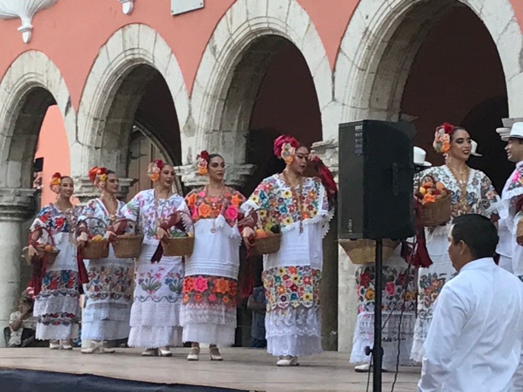 Alrededor de la Plaza, el ayuntamiento, el centro cultural Olimpia, la Catedral, la gobernación, la casa museo Francisco de Montejo ;y tiendas artesanales. Al final de la tarde de este día domingo, frente al Ayuntamiento se erige una plataforma para la presentación de grupos de danza folclórica de Yucatán. Los yucatecos vibran con los ritmos musicales de la Jarana y la Vaquería.