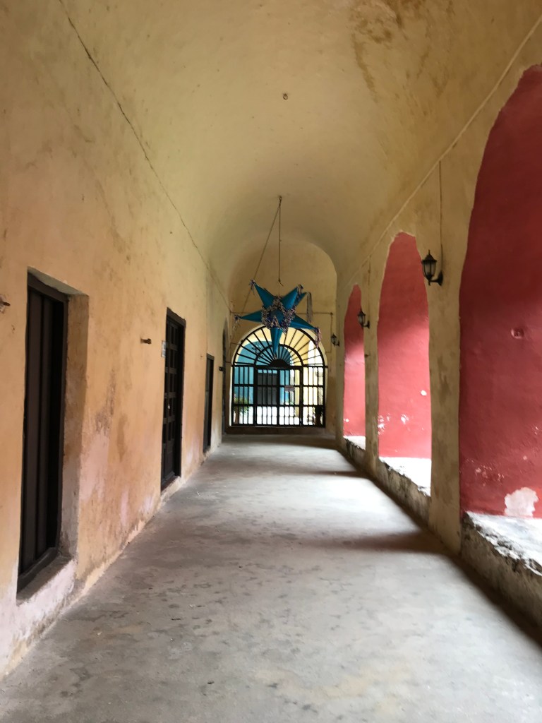 Con el paso del tiempo y la evangelización emprendida por los franciscanos la población fue aceptando la religión católica; y las posteriores generaciones mayas fueron abandonando los rituales ancestrales a sus dioses. Al interior del convento un patio interior muy similar a los monasterios españoles con techos altos, arcos y un jardín interior con plantas.